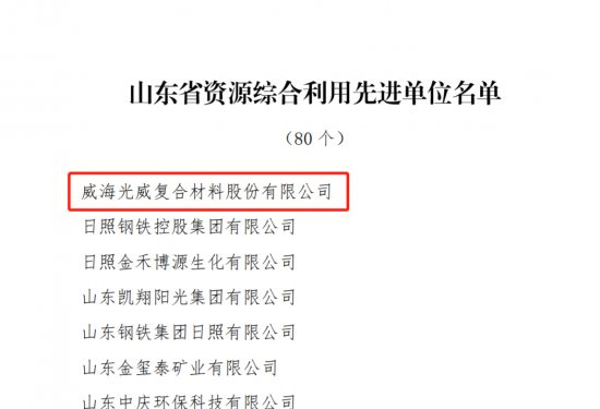 近日,山东省人民政府表彰全省资源综合利用先进单位,威海光威复合材料股份有限公司成功入??!山东省资源综合利用先进单位 山东省资源综合利用先进单位的评选是依据《山东省人力资源和社会保障厅 山东省工业和信息…